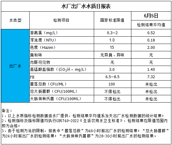 水廠出廠水水質日報表(2025-6-5)