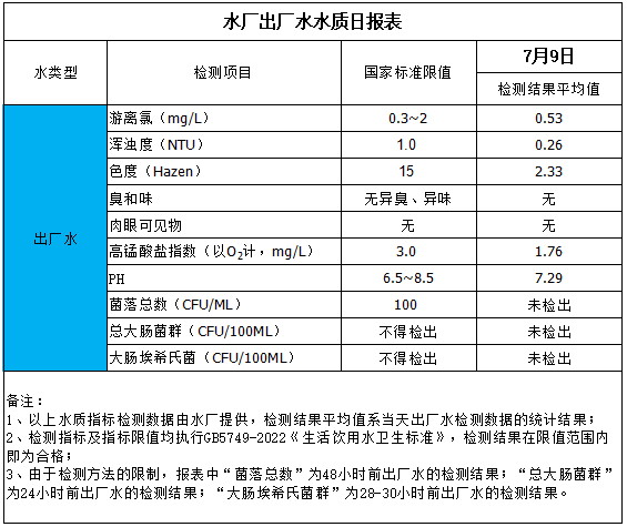 水廠出廠水水質(zhì)日?qǐng)?bào)表(2025-7-9)