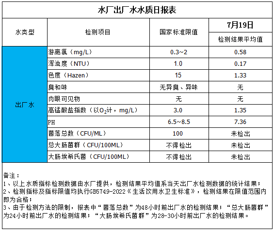 水廠出廠水水質日報表(2025-7-19)