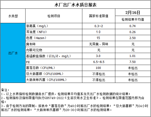 水廠出廠水水質(zhì)日報表(2024-2-16)