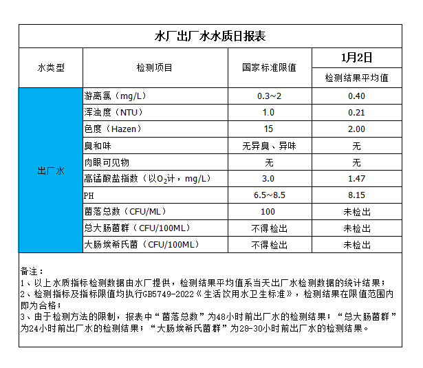 水廠出廠水水質(zhì)日報(bào)表(2025-1-2)